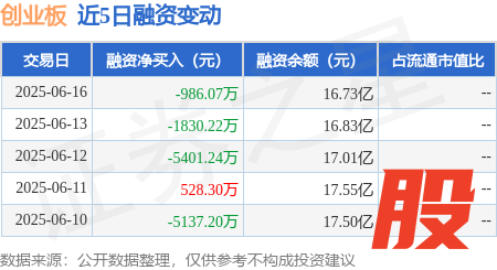 本站消息智慧财讯,6月16日,创业板(159915)融资买入1.12亿元,融资偿还1.22亿元,融资净卖出986.07万元,融资余额16.73亿元。